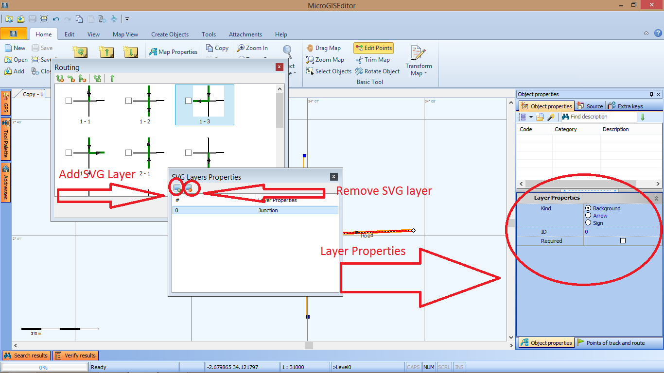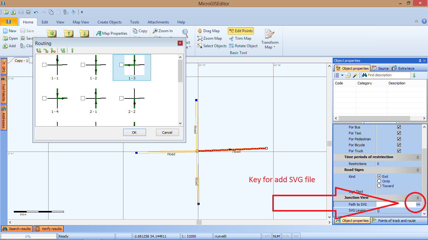 5. After add SVG file AND properties for layers at mode "Show Routing Nodes" (at tab "Map View") - we have to see "JV" at intersection