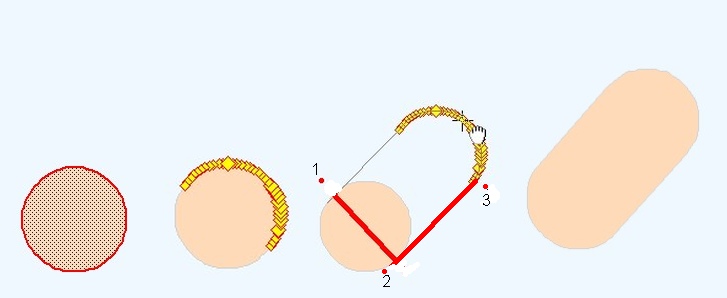 Реализация не сложнее, чем эллипс. Первые два клика мышью работают по алгоритму построения круга. Прямая между ними режет круг диаметрально, третья точка вытягивает прямые, как в инструменте "перевернутый прямоугольник", задавая длинну и направление. Точкой вращения недостроенной фигуры весьма желательно опеделить центр первого полукруга, а не вторую вершину, как сейчас на прямоугольнике. ИМХО эта фигура ("Стадион") может заменить экзотичный эллипс совсем.