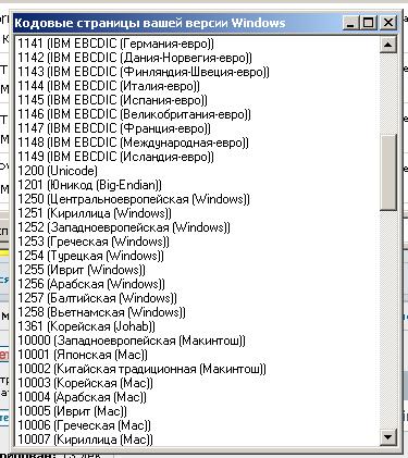 Alex писал(а):Кодовые страницы берутся из вашего Windows.