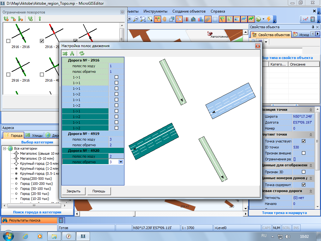 В смысле? Обе дороги имеют одинаковое направление. Но у 4119 (голубой) стоит в прямом направлении 3 полосы, дорога правостороняя - и нарисовано 3. А у 4920 (бирюза) стоит в прямом (справа по ходу) - две полосы. Т.е. наоборот. Или в смысле пишется в файл неправильно?