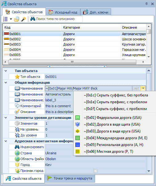 В групповой таблице - да доступны, а вот в окне "свойства объекта" ни какого выпадающего списка справа от поля "наименование" - нетAlex писал(а):Все доступные варианты, доступны в выпадающем списке, справа от поля НАИМЕНОВАНИЕ.DarkDiver писал(а):Глупый вопрос, подскажите как при создании, например, точечных объектов, иначе чем прописывая вручную вставлять, префиксы/суффиксы вида "~[0x1f]" (например "г.Высокая~[0x1f]1332.6")?