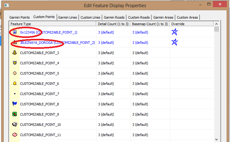 - набор Custom включающий 3079 типов экспортируется с GRMN_TYPE записанный в TYP.txt файл.