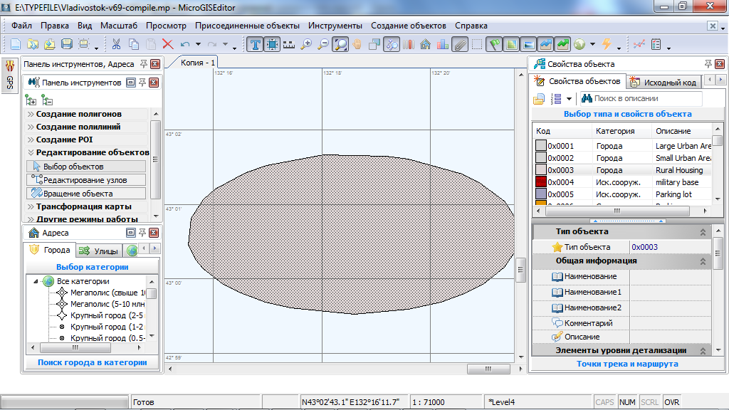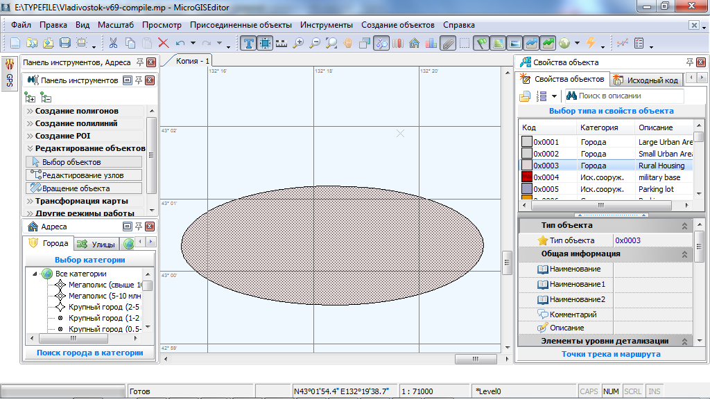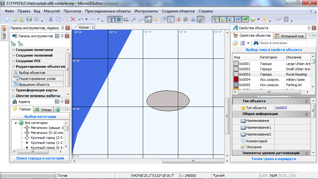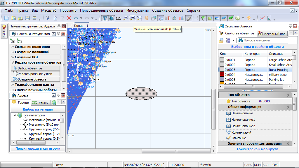 При отрисовке карт придётся мне пользоваться поочерёдно MicroGIS Editor и GPSMapEdit. Мапэдитом - для отрисовки круглых полигонов и круговых перекрёстков.