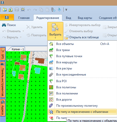 Открываем окно выбра объектов по типу и пересечению. Находится здесь